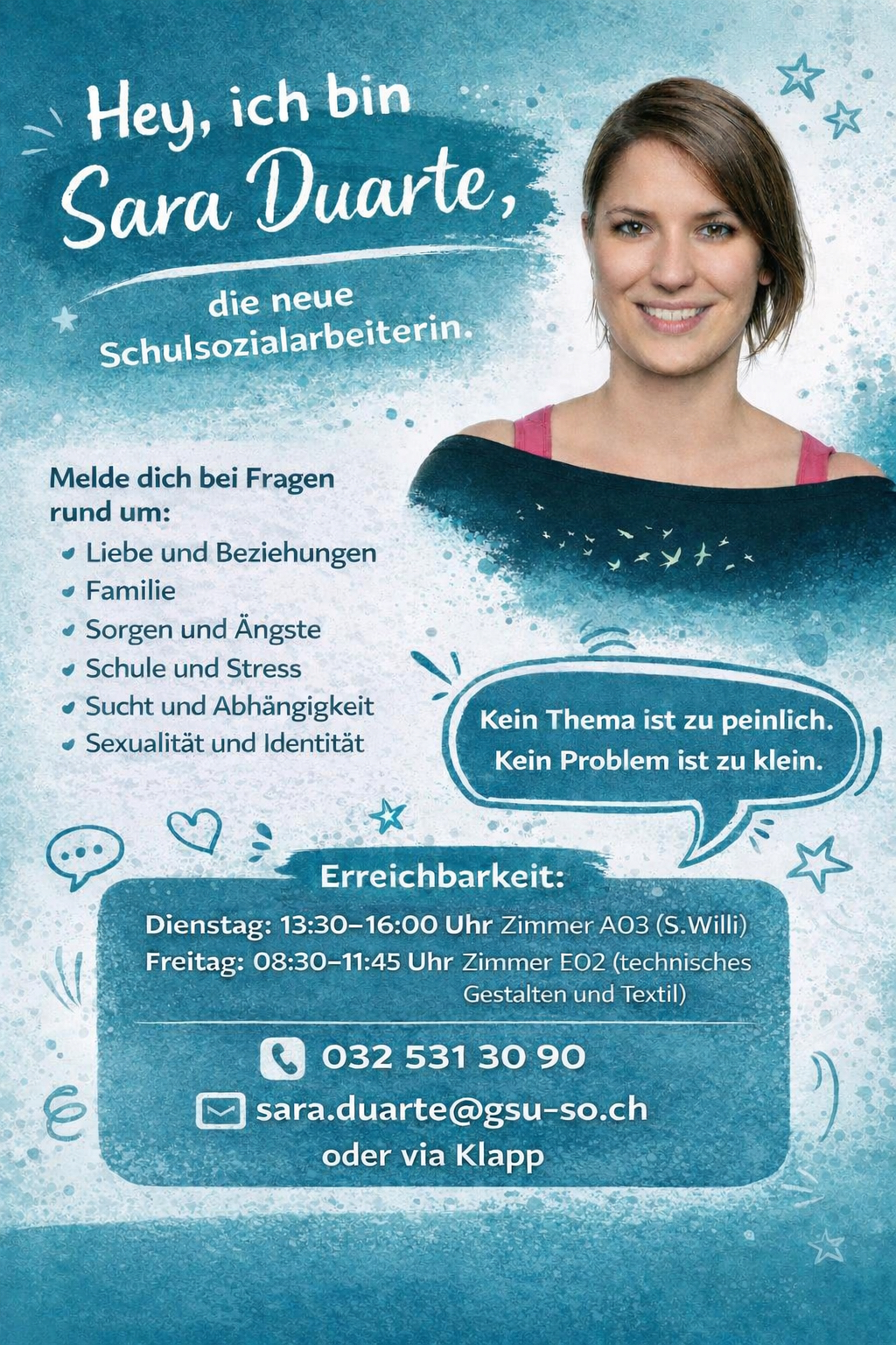 - Die Schulsozialarbeit untersteht der beruflichen Schweigepflicht. Gespräche werden vertraulich behandelt.