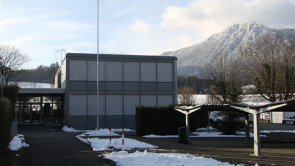 Sekundarschulzentrum Unterleberberg in Hubersdorf, Blick von Osten auf Haupteingang.